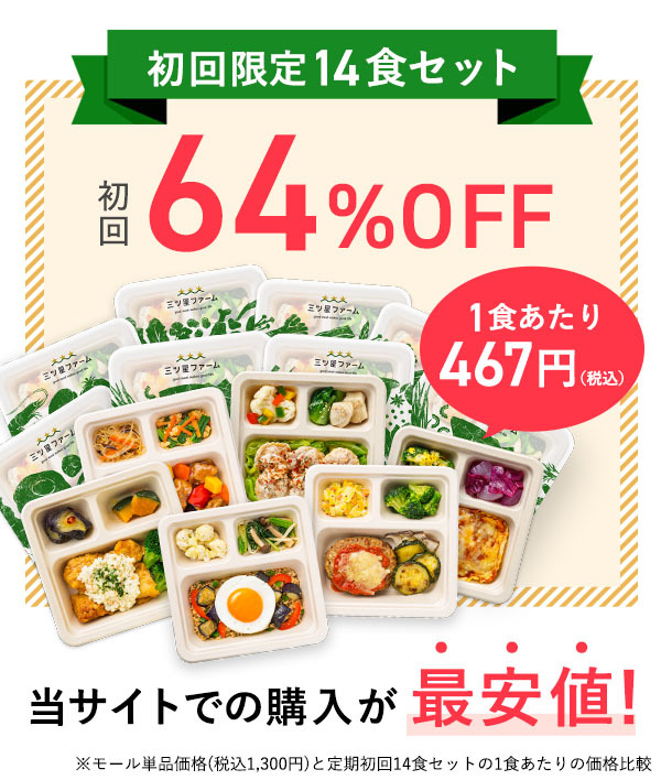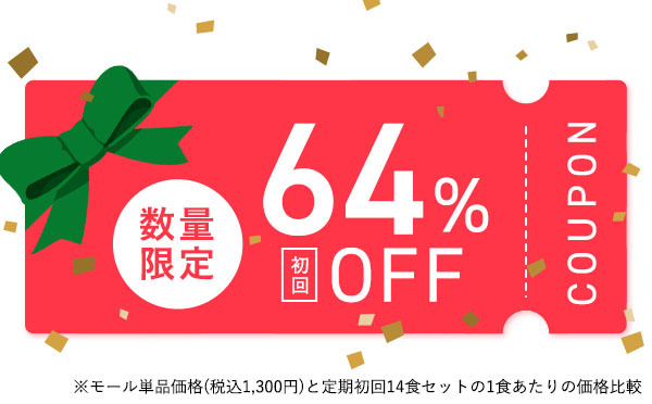 ※モール単品価格(税込1,300円)と定期初回14食セットの1食あたりの価格比較