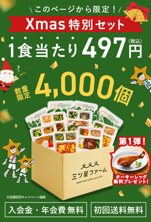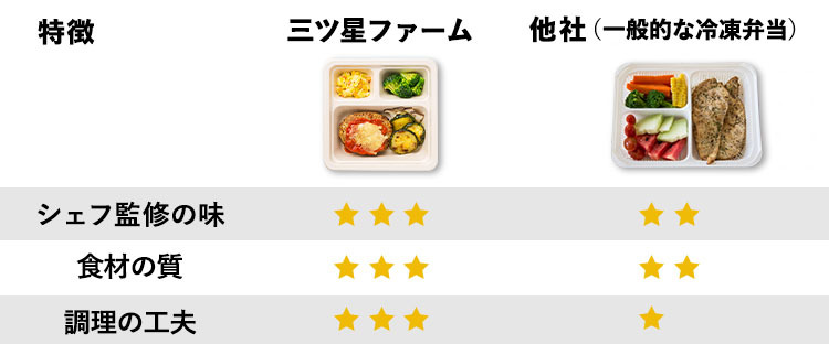 - つい最近、三ツ星ファームさんを利用し始めたのですが、正直なところ、これまで食べていた宅食は何だったのか!?と驚くほど美味しくてビックリしています。マンネリ化して食事が義務化していたのがウソのように、毎日の食卓が輝いております。ありがとうございます!40代 / 女性